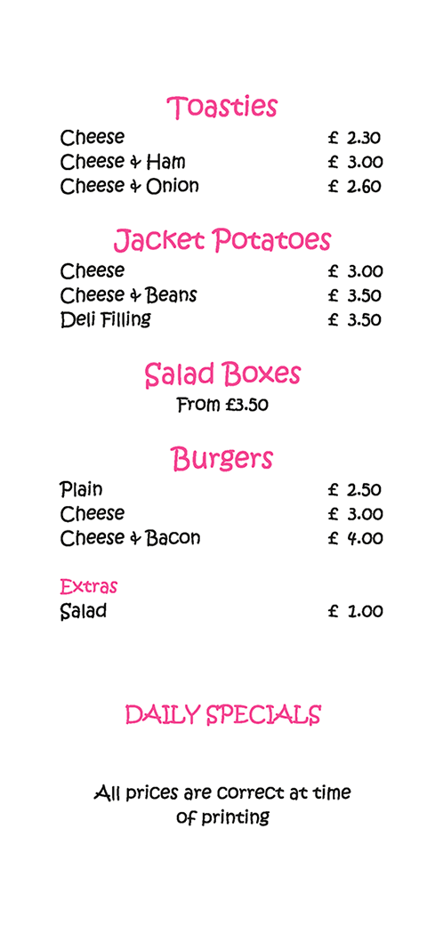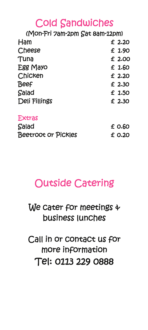 Our in house Chef has been providng quality food for Pudsey and near by areas for over 30 years.