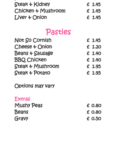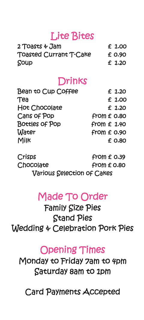 We would like to thank all our customers over the past couple of years, and look forward to many years ahead providing you with our tasty pies and pasties and other baked goods. We also provide outside catering services and a bespoke wholesale service
